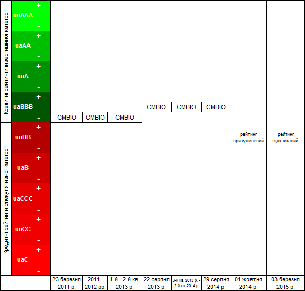 | 2 | Присвоєння | 23.03.2011 | uaBBB- | стабільний | CMBIO-КРП-002-ПР |
