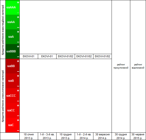 | 5 | Підтвердження | 30.09.2014 | uaBBB- | стабільний | EKOVI-КРІ-01/02-007/005-ОН/ОН |