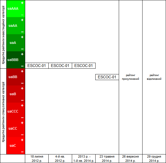 | 1 | Присвоєння | 18.07.2012 | uaBBB- | стабільний | ESCOC-КРІ-01-001-ПР |