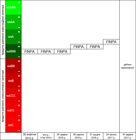 | 16 | Підвищення зі зміною прогнозу | 08.08.2016 | uaBBB+ | позитивний | FINPA-КРП-016-ОН |