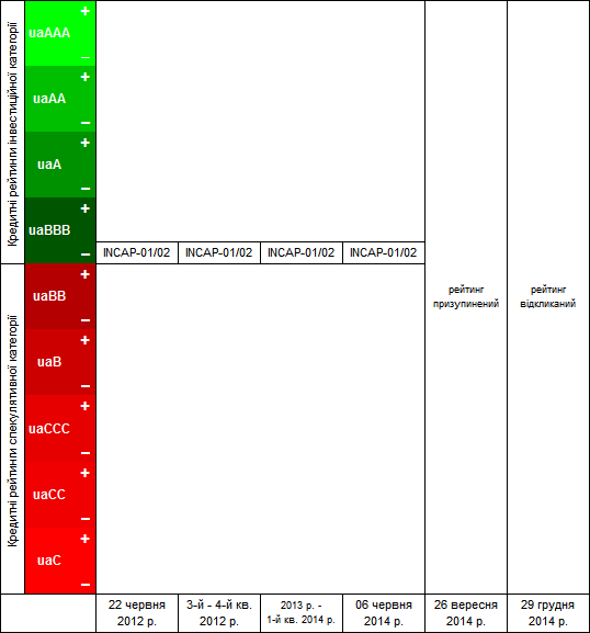 | 1 | Присвоєння | 22.06.2012 | uaBBB- | стабільний | INCAP-КРІ-01/02-001-ПР |