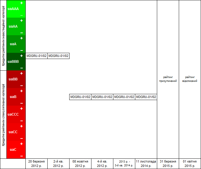| 13 | Призупинення | 31.03.2015 | рейтинг призупинений | 15/03/31-07-MDGRU-КРІ-01-02-014-ОН | |