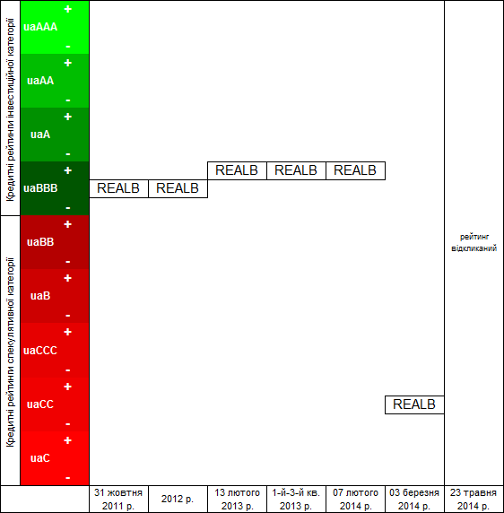 | 10 | Підтвердження | 07.02.2014 | uaBBB+ | стабільний | REALB-КРП-010-ОН |
