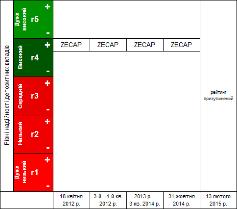 Рейтинг депозитів ПАТ «КБ «ЗЕМЕЛЬНИЙ КАПІТАЛ»